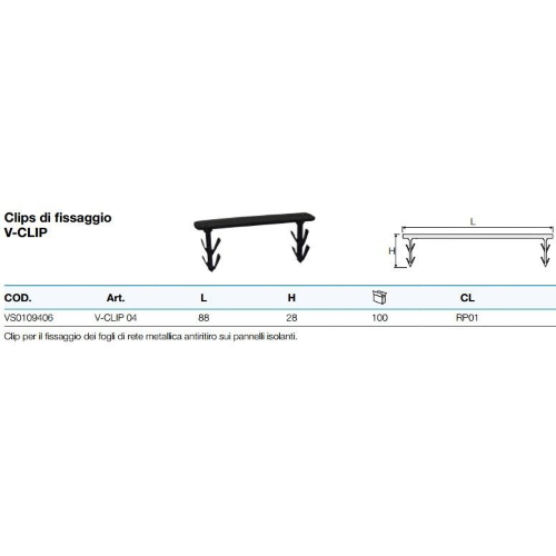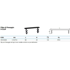 CLIP DI FISSAGGIO RETE V-CLIP04 L.88 H.28 (CF. 100PZ)