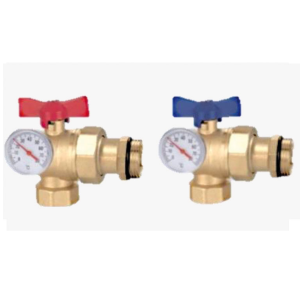 COPPIA DI VALVOLE A GOMITO 1" CON TERMOMETRO